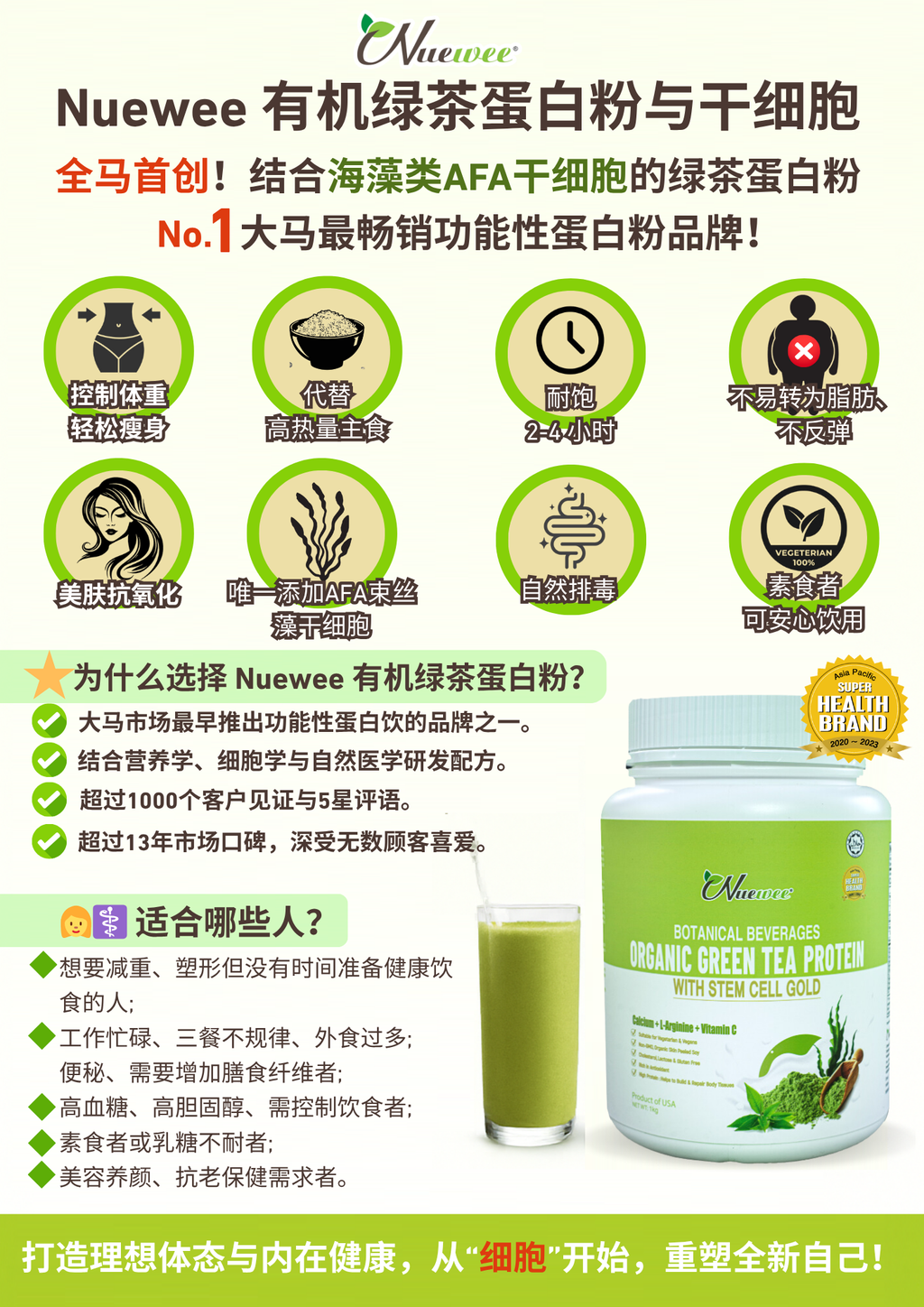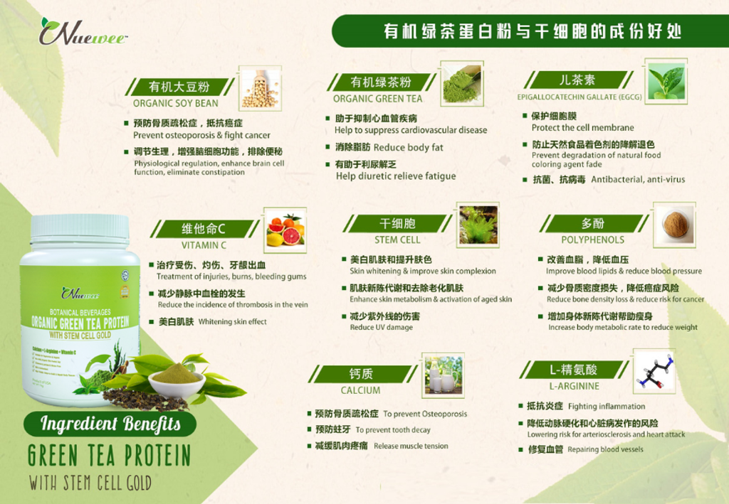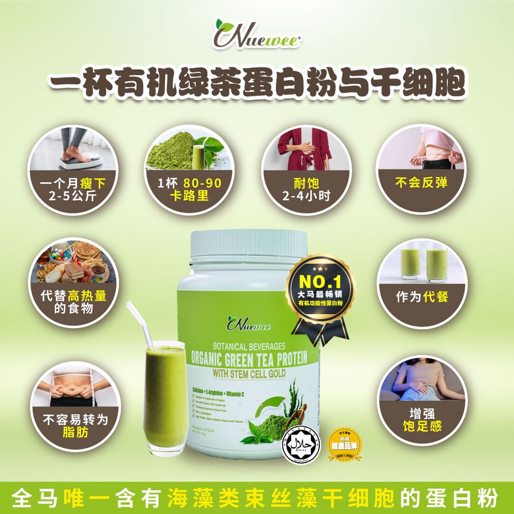 ✔️ 1 × Nuewee Organic Green Tea Protein with Stem Cell Gold (1KG)