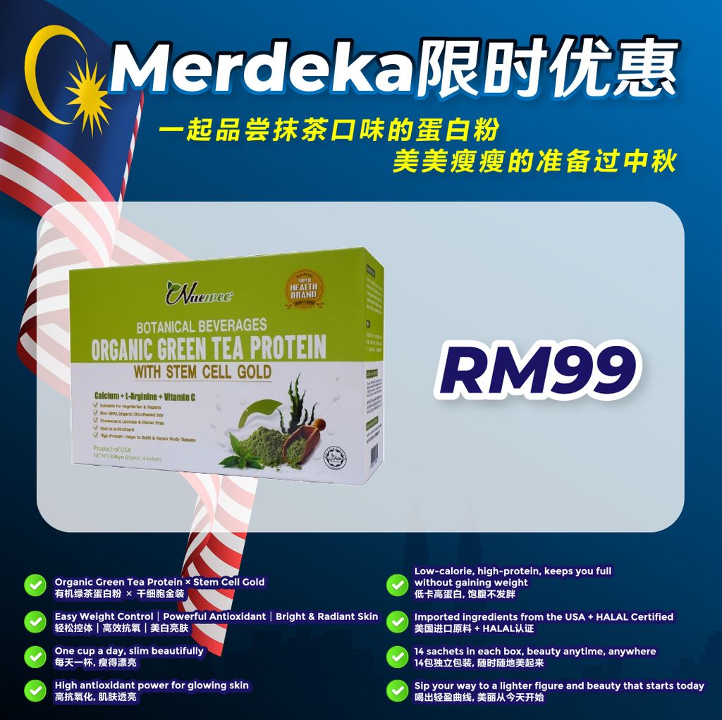 【Nuewee Organic Green Tea Protein with Stem Cell Gold】 (extract from Seaweed Algae) is a nutritious healthy beverage which combines soy, a good source of protein and calcium, and green tea that is powerful antioxidant.